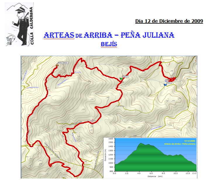 NOTA.- Una alternativa para subir a la Peña Juliana, sería dejar el vehículo en el collado donde se inicia la senda, en la pista que viene de Bejis pasando por la Peña Escabia. bajar por la cresta, como en la descrita antes, y volver hacia Bejís, (no hacia Arteas) a buscar de nuevo el coche.