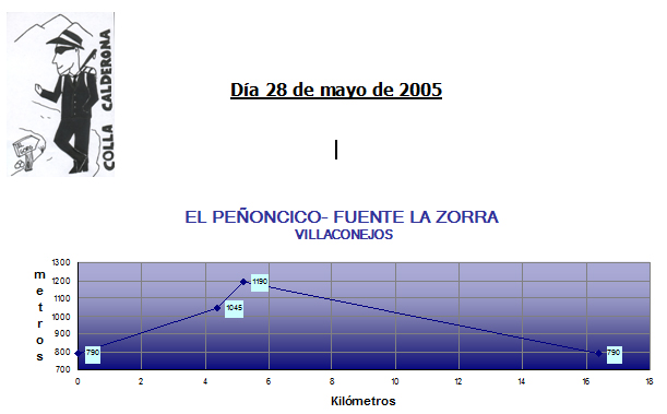 A los 5,2 km, hacemos cumbre a 1190 m/a, 10,40 h. Seguimos a la derecha por camino bastante indefinido hasta “el Peñoncico”, que señala el límite entre los términos de Villaconejos y Cañamares, donde almorzamos.